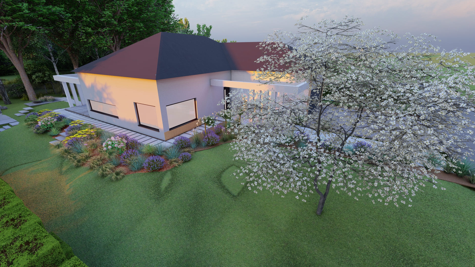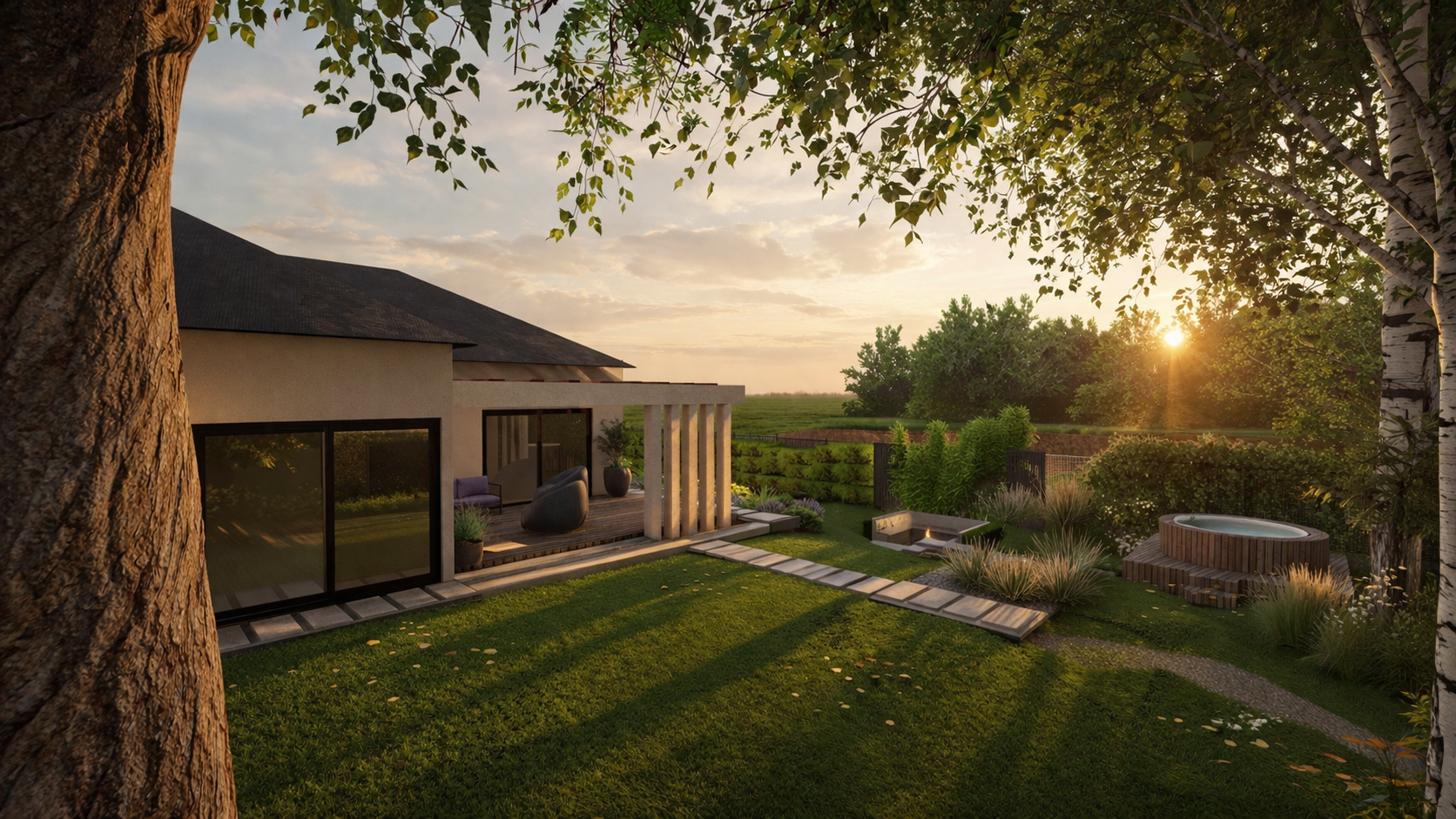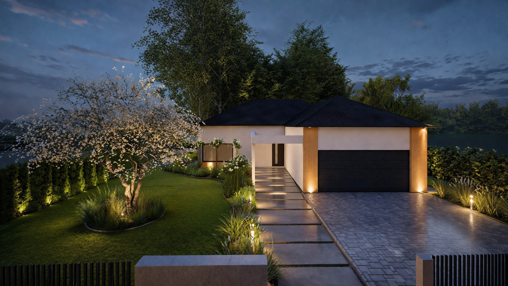 Ten kompleksowy projekt z 2025 roku zachwyca luksusową strefą SPA oraz klimatycznym paleniskiem, tworząc idealne warunki do intymnego relaksu. Dzięki przemyślanemu ukształtowaniu terenu, eleganckim nawierzchniom i nastrojowemu oświetleniu, starannie dobrana roślinność płynnie przenika się z otoczeniem, oferując inwestorom prywatną, leśną oazę spokoju w sercu Małopolski.
