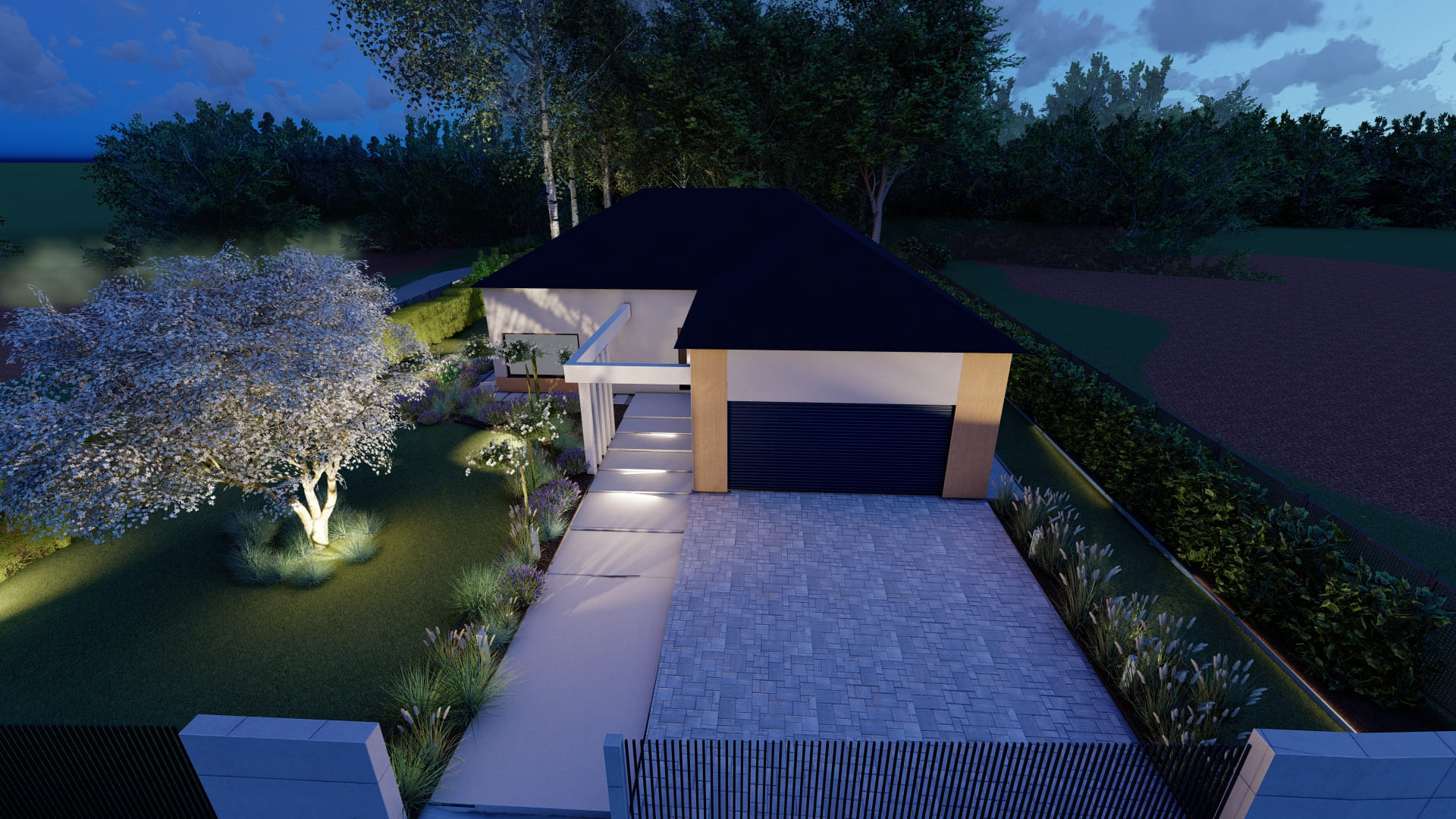 Projekt 'New Forest Garden’ to unikalna przestrzeń o powierzchni 600 m², zlokalizowana w malowniczym Nieporazie, na styku z naturalnym leśnym krajobrazem.