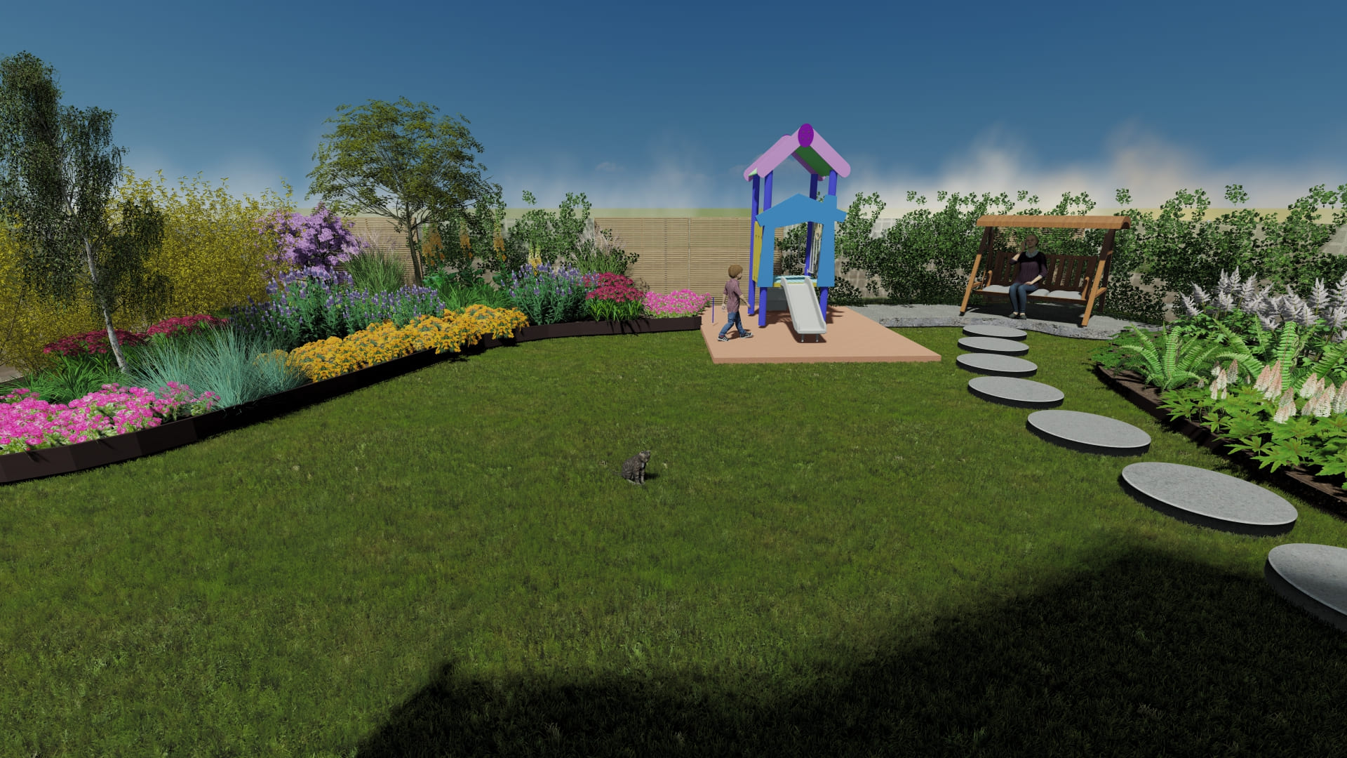 Zrealizowana latem 2023 roku koncepcja harmonijnie łączy elegancki, reprezentacyjny przedogródek wita gości, z bezpieczną, kreatywną strefą zabaw dla najmłodszych zlokalizowaną w głębi działki. Starannie skomponowana, odporna zieleń otula całą posesję, wydzielając przytulne zakątki, w których każdy członek rodziny znajdzie swoje idealne miejsce do relaksu. To wymarzona, kameralna oaza, która inteligentnie rośnie i zmienia się wraz z potrzebami domowników, zachowując przy tym najwyższe standardy współczesnego designu.