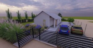 Ten minimalistyczny projekt w Jaworznie to doskonały przykład harmonijnego połączenia nowoczesnej architektury z funkcjonalnym krajobrazem.